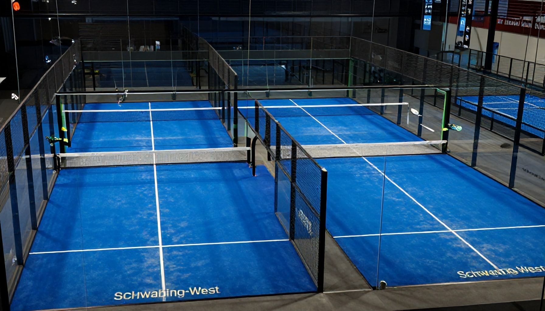 Praktisch: Zwischen den Courts befindet sich eine zentrale Lounge mit Sitzgelegenheiten, Getränkeautomaten und einem digitalen Spielplan-Display. So lassen sich Wartezeiten zwischen den Matches angenehm überbrücken – oder man tauscht sich einfach mit anderen Spielern über Taktiken aus, während im Hintergrund die Bälle über die Glaswände klatschen.
