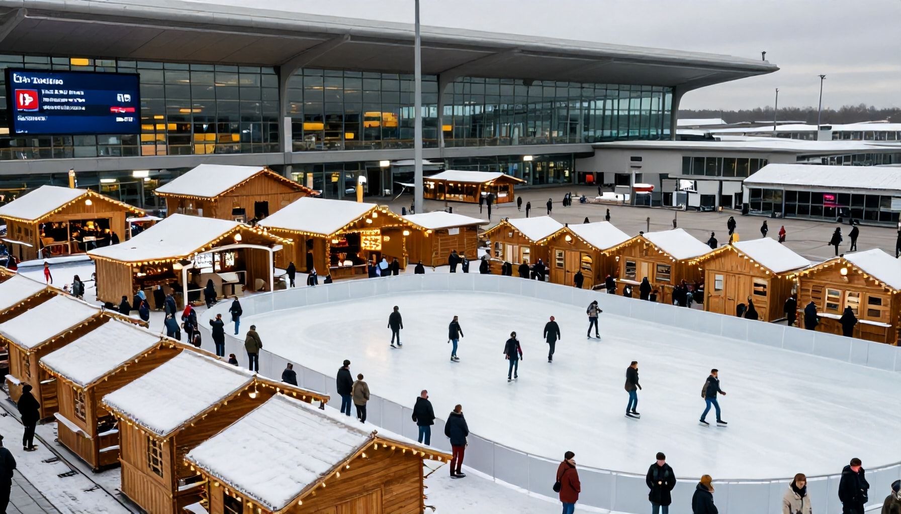 Die Flughafenbetreiber prüfen derzeit verschiedene Szenarien, darunter eine räumliche Trennung zwischen klassischem Marktbereich und zusätzlichen Aktionsflächen wie einer zweiten, größeren Eisbahn oder einem Familienbereich mit Winterrutschen. Klare Priorität hat dabei die Verkehrsanbindung: Schon 2023 führten Stoßzeiten zu Wartezeiten von bis zu 20 Minuten an den Sicherheitskontrollen für Marktbesucher, die anschließend weiterfliegen wollten.