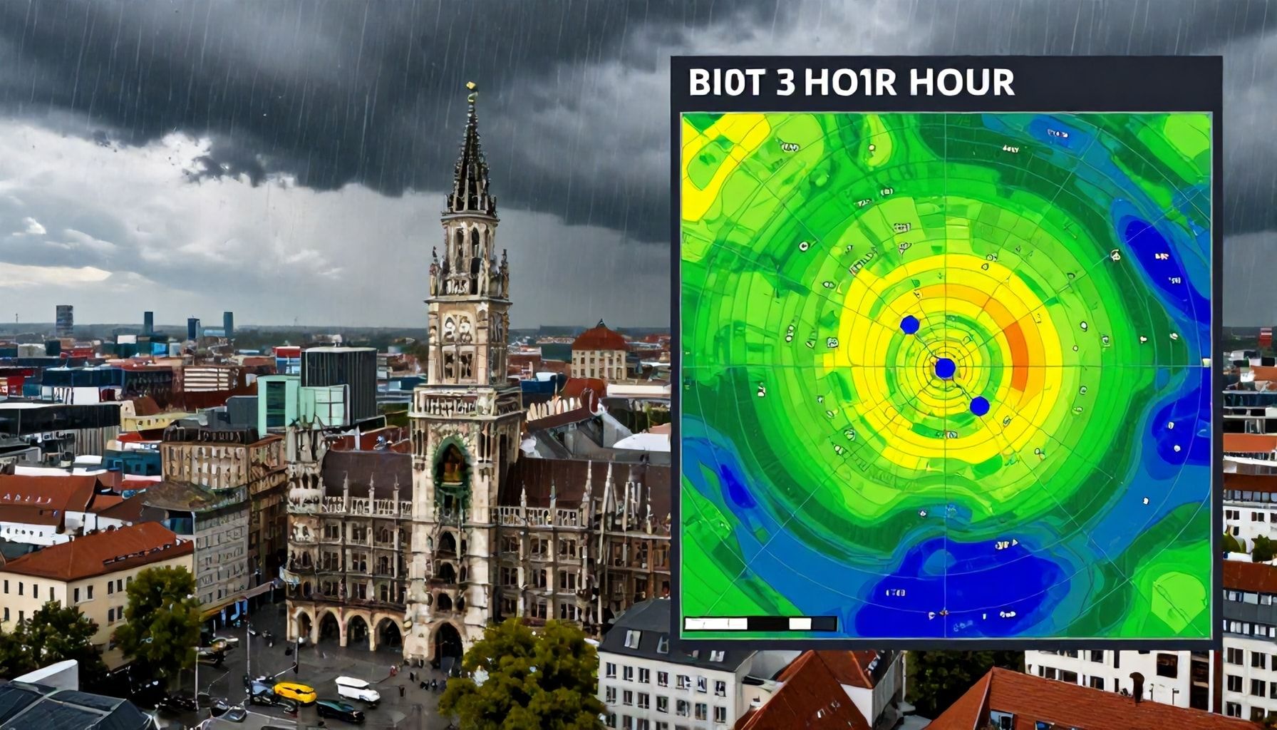 Im Stadtzentrum – etwa um den Marienplatz oder die Ludwigsvorstadt – fällt der Regen zwar ebenfalls kräftig, aber mit etwas geringerer Intensität. Hier sind es vor allem die engen Gassen und die Kanalisation, die bei solchen Wolkenbrüchen schnell an ihre Grenzen stoßen. Meteorologen warnen vor lokalen Überflutungen, besonders in Tiefgaragen und Unterführungen.