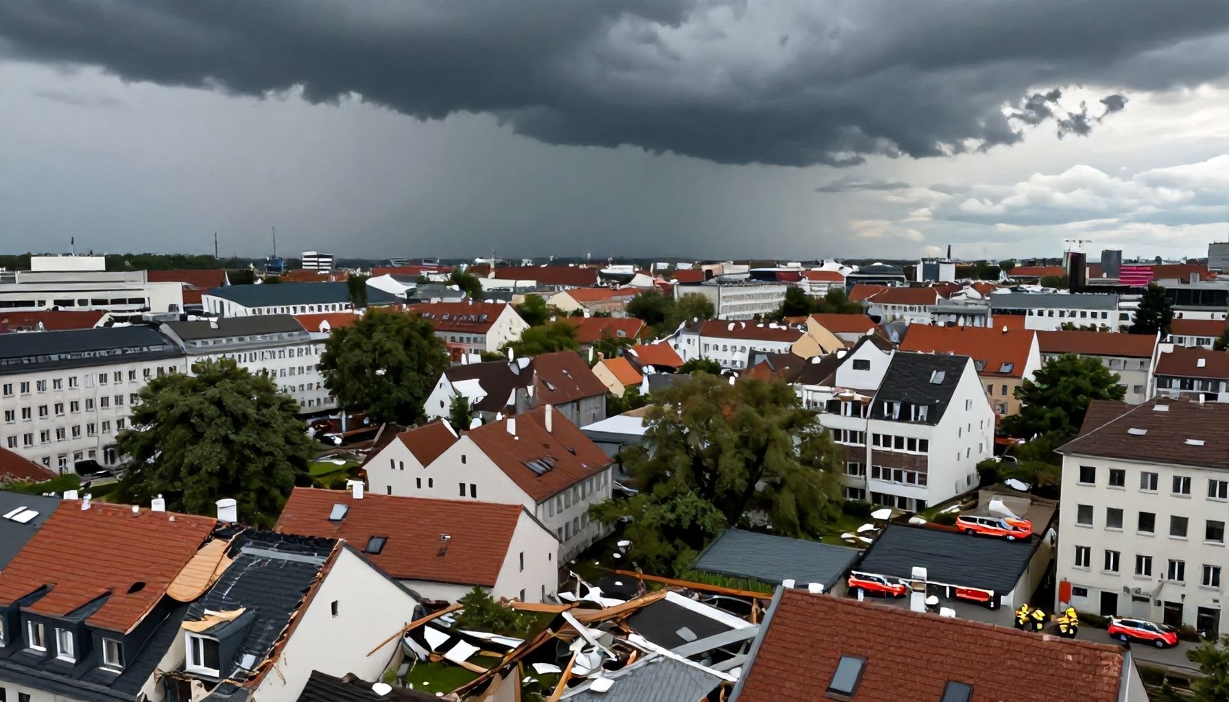 Der Sturm traf München mit voller Wucht und hinterließ besonders in den Stadtteilen Schwabing, Neuhausen und Moosach ein Bild der Verwüstung. Dächer wurden wie Pappe abgehoben, teils landeten sie Dutzende Meter entfernt auf Straßen oder parkenden Autos. Im Bezirk Maxvorstadt riss der Wind die Dachkonstruktion eines historischen Altbaus teilweise ab, sodass die Feuerwehr die umliegenden Gehwege absichern musste. Die Münchner Berufsfeuerwehr meldete allein bis zum frühen Abend über 250 Sturmeinsätze – ein Rekord seit dem Orkan „Kyrill“ 2007.